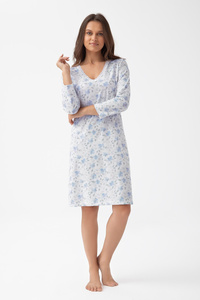 Koszula nocna bawełniana 167 niebieski – rękaw 3/4, nadruk, rozkloszowana, przed kolano
