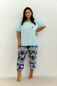 Carbonia Piżama Damska krótki rękaw, 3/4 spodnie Italian Fashion - niebieski/druk