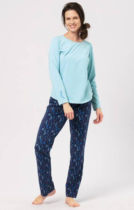 Folk Piżama Damska długi rękaw, długie spodnie Italian Fashion - granatowy/druk