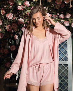 86463 Kamelia Piżama damska na ramiączkach Mewa różowe kwiaty
