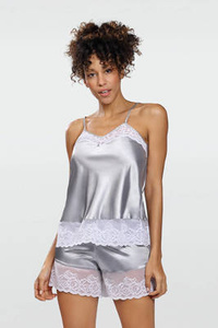 Dotyk Piżama Damska wąskie ramiączko, krótkie spodenki Italian Fashion - ecru