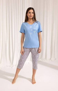 668 Piżama damska rozpinana Luna - biały-niebieski w kwiaty