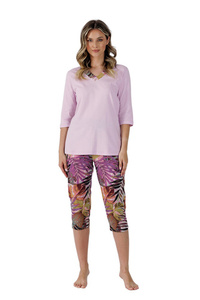 Glamour Piżama Damska długi rękaw i długie spodnie Italian Fashion - różowy/druk