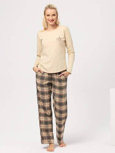 Evora Piżama Damska długi rękaw, długie spodnie Italian Fashion - ecru/druk