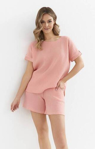 Leta Piżama Damska krótki rękaw, spodenki Italian Fashion - druk/róż pudrowy