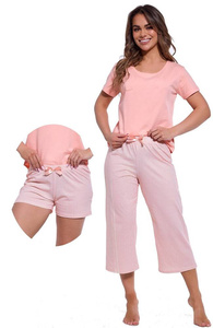 Piżama damska Key LNS 759 koralowa – bawełna, krótka, kieszenie