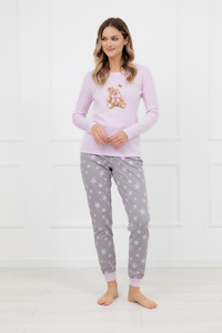Piżama damska Taro Tori 3510 różowy– bawełniana, z nadrukiem croissanta, długa z nogawkami 7/8