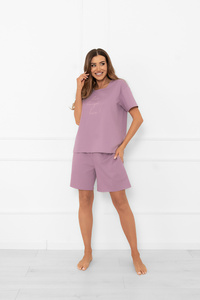 Piżama damska Ksara Italian Fashion – bawełniana, krótki rękaw i spodenki - wrzosowy
