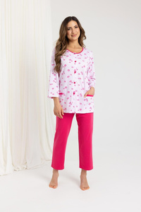 705 Piżama damska Regina różowa – bawełniana, długi rękaw, długie spodnie