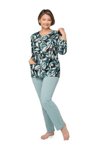 Tess Piżama Damska długi rękaw i długie spodnie Italian Fashion - zielony/druk