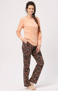 Folk Piżama Damska długi rękaw, długie spodnie Italian Fashion - jeżyna/druk
