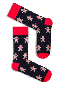 1290-029 Skarpety męskie świąteczne Milena czarny – Renifer I Cukrowe laski, bawełniane