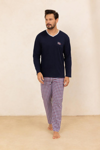 Piżama męska Regina 491 granatowa– bawełna, długi rękaw, wygodna i klasyczna