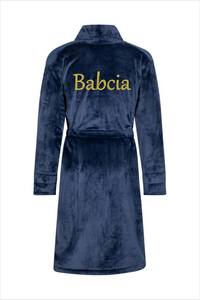 Super Babcia Szlafrok damski polarowy ByShelly - granatowy/złoty