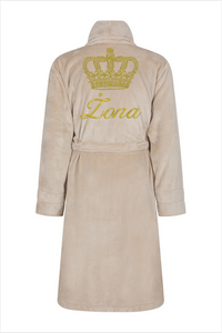 Queen + Korona Szlafrok damski polarowy ByShelly - beżowy/złoty
