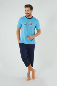 Junak Piżama Męska krótki rękaw i 3/4 spodnie Italian Fashion - niebieski/granat