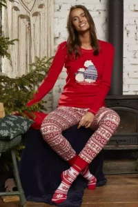 Arktyka Piżama Damska długi rękaw, długie spodnie Italian Fashion - czerwony/druk