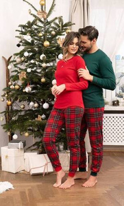 Narwik Piżama Męska krótki rękaw, długie spodnie Italian Fashion- czerwony/druk