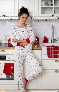 Mallory Piżama Sensis – bawełniana piżama damska z długimi spodniami i świątecznym nadrukiem