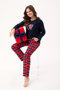 Arktyka Piżama Damska długi rękaw, długie spodnie Italian Fashion - czerwony/druk