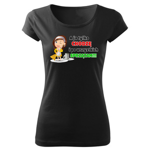 SKU D045 "A ja tylko chodzę i po wszystkich sprzątam" koszulka damska Moocha czarny