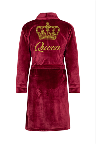 Queen + Korona Szlafrok damski polarowy ByShelly - bordowy/złoty