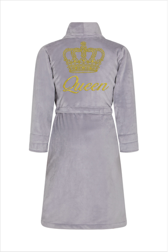 Queen + Korona Szlafrok damski polarowy ByShelly - czarny/złoty