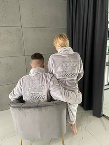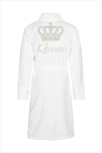 Queen + Korona Szlafrok damski polarowy ByShelly - biały/srebrny