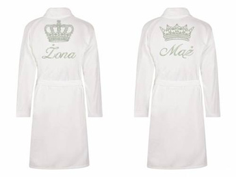 Żona + Korona Szlafrok damski polarowy ByShelly - biały/srebrny