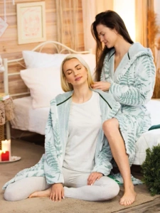 031 Kocyk Szlafrok De Lafense – ciepły polarowy szlafrok damski Super Cozy, niebieski