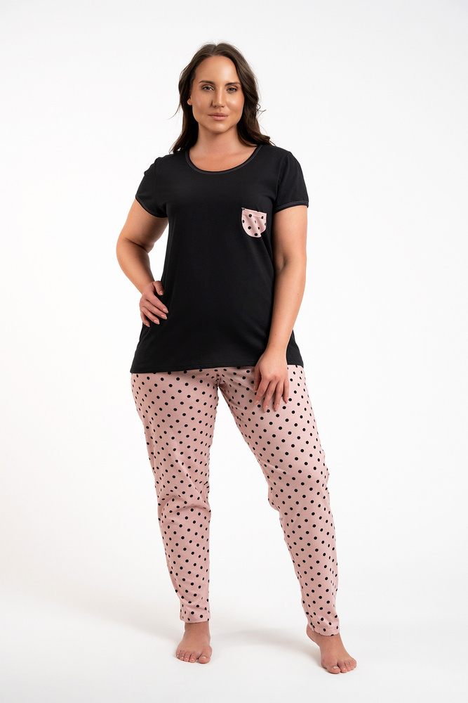 Buscato Piżama Damska krótki rękaw, długie spodnie Italian Fashion czarny/druk