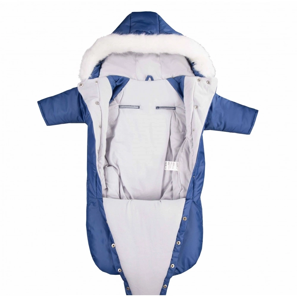 Kombinezon uszyty z miękkiej i przyjemnej w dotyku tkaniny odzieżowej stanowiącej doskonałą ochronę dziecka przed chłodem, deszczem oraz wiatrem. Posiada dodatkową warstwę ocieplacza. Wewnątrz wyłożony jest bawełną. Elementem ozdobnym jest śliczne futerko przy kapturku. Kombinezon odpinany na dwa zamki.
