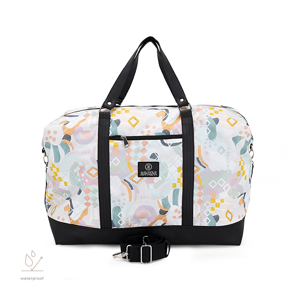 Zapytaj o produktTorba weekendowa stworzona z myślą o wszelkich wyjazdach. Zamykana na zamek, wewnątrz obszerna kieszeń zamykana na suwak i komplet mniejszych kieszonek. Po zewnętrznej stronie podręczna kieszonka zapinana na suwak, oraz szeroka szlufka z kieszonką umożliwiająca zamontowanie torby na walizce. Po bokach torby znajdują się karabińczyki zmniejszające jej rozmiar. Torba posiada regulowany pasek na ramię o długości 80-100cm, wygodne rączki z ekoskóry o długości 50cm, ma wzmocnione i usztywnione dno z ekoskóry, oraz metalowe nóżki do dodatkowej ochrony.