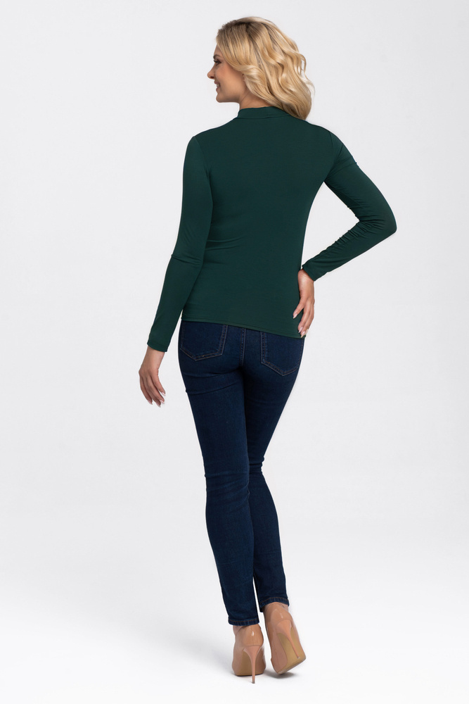 Koszulka damska wykonana z miękkiej wiskozy z dodatkiem elastanu. Półgolf, długi rękaw. Dopasowuje się do ciała zapewniając komfort noszenia. Cała koszulka jest gładka, dzięki czemu można ją wykorzystać pod kolorowe i wzorzyste marynarki.Powyższy produkt jest wyrobem najwyższej jakości, został zaprojektowany według najnowszych trendów mody. Wiskoza jest materiałem który idealnie dopasowywuje się do ciała,ale również jest materiałem przewiewnym i przyjaznym dla skóry. Włókna wiskozowe, gwarantują wyrobom dobrą układalność, są oddychające i przyjemne w dotyku. Mówi się o nich, że łączą w sobie walory estetyczne jedwabiu z łatwością pielęgnacji bawełny.