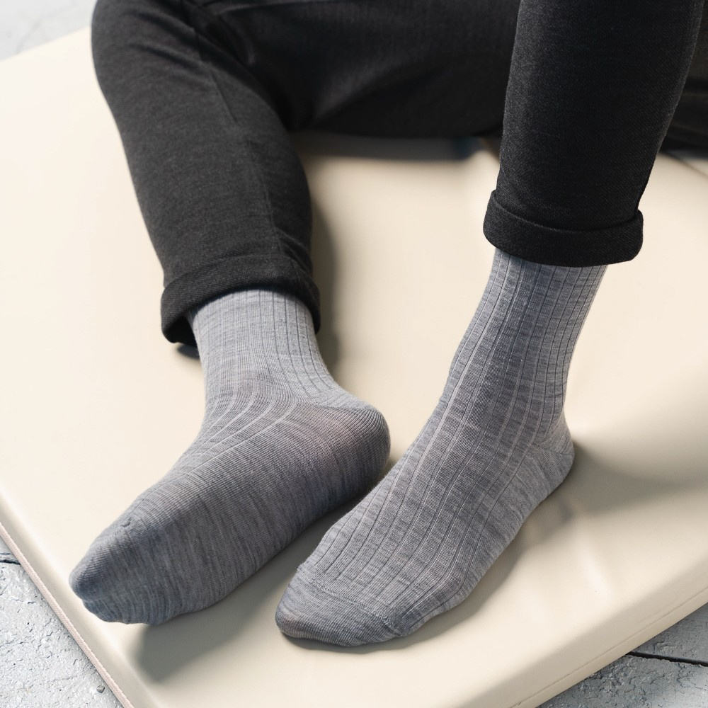Art.130 Merino Prążek Skarpety Męskie Steven - 001 jasny szary