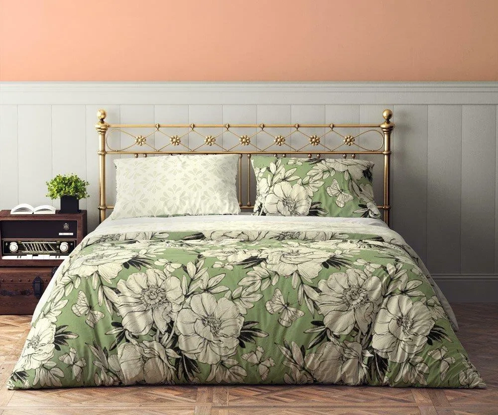 Flovery 002 Pościel bawełniana kwiaty Faro zielony