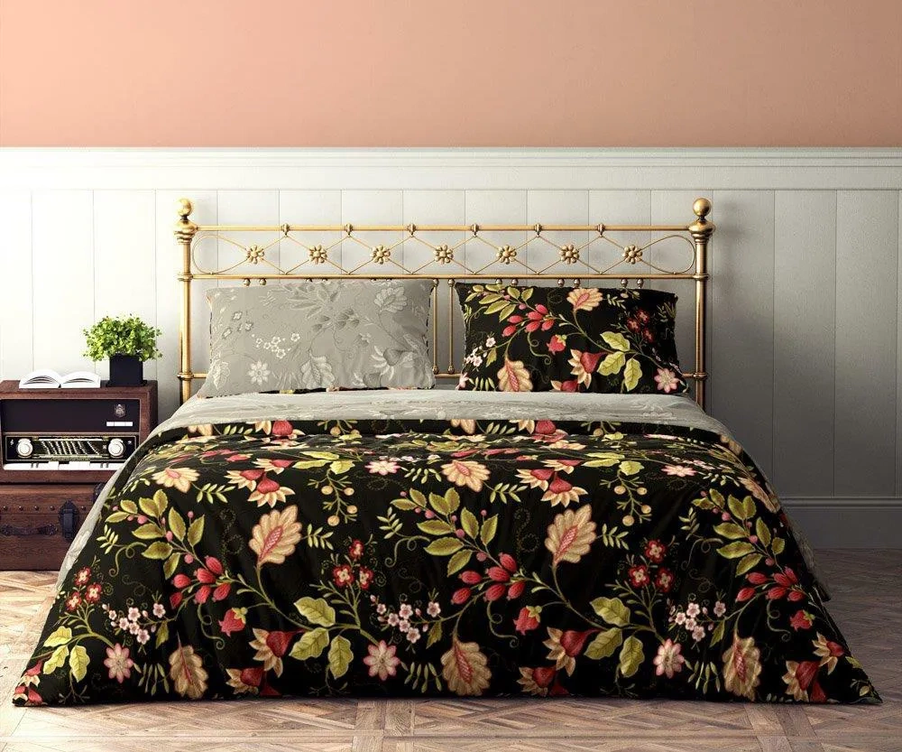 Flovery 004 Pościel bawełniana kwiaty Faro czarny