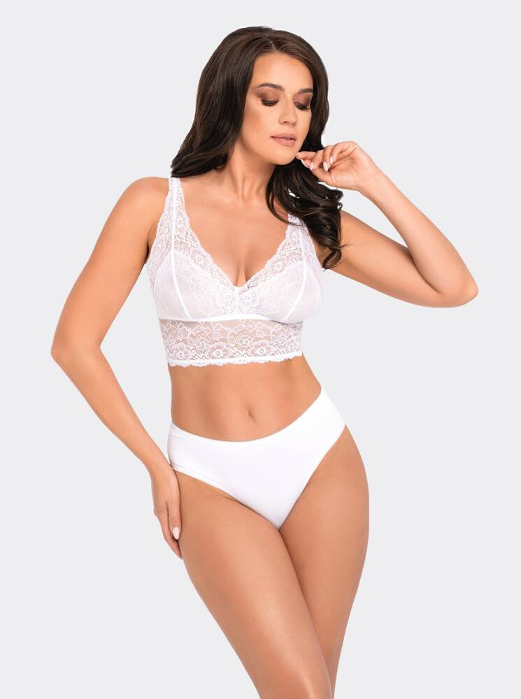 Eleganckie majtki damskie z klasycznym regularnym stanem. Przód majtek jest wykonany z miękkiej, jedwabistej mikrofibry. Z tyłu wszyto fantazyjną koronkę z dyskretnym ozdobnym okienkiem, które dodaje odrobinę nonszalancji.