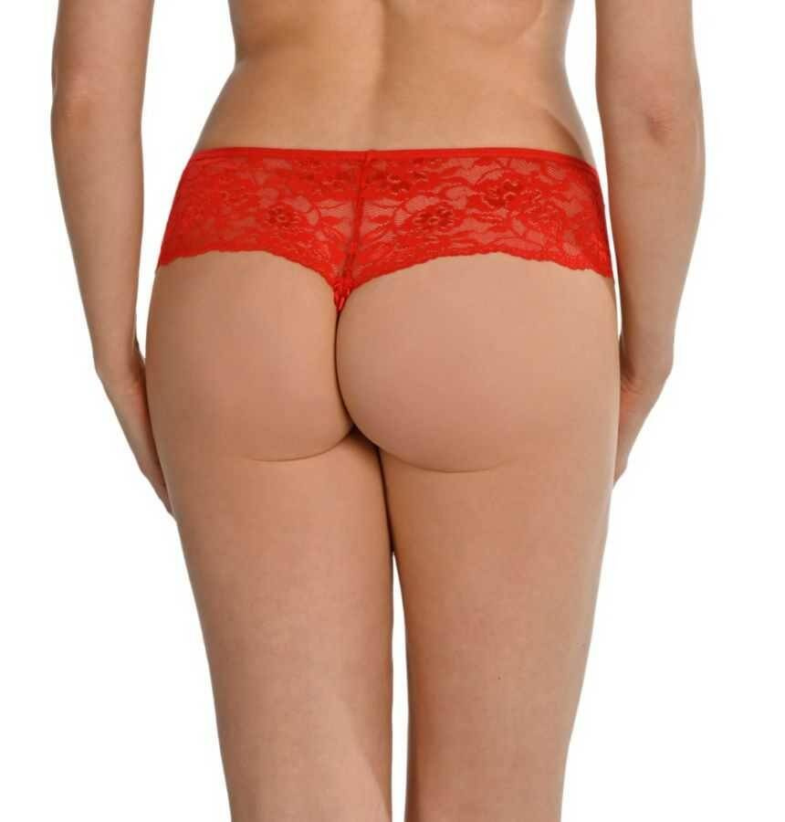 Seksowne i niezwykle kuszące damskie stringi koronkowe z dziurką. Wykonane są z wyrazistej o dużym motywie kwiatowym koronki, która idealnie dopasowuje się do ciała. Majtki w kroku posiadają otwartą dziurkę i są adresowane do odważnych pań, które lubią rozkoszować się chwilą z ukochaną połówką. Z tyłu przypominają tak lubiane przez kobiety brazyliany. Z przodu majtki zdobi delikatna i subtelna atłasowa koronka.
