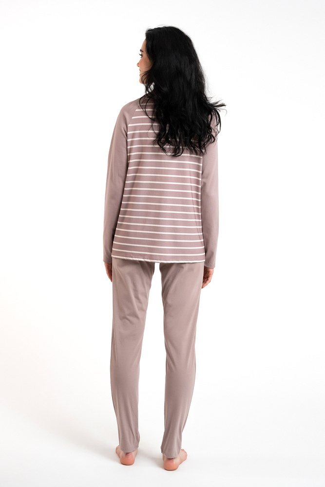 Oda Piżama Damska długi rękaw, długie spodnie Italian Fashion - druk cappuccino/cappuccino