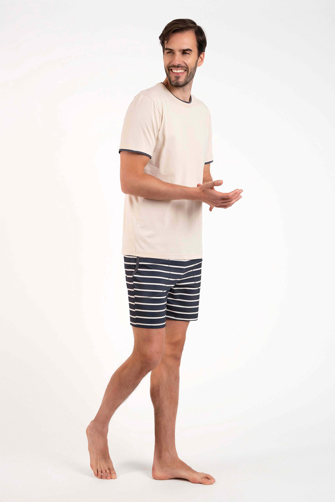 Lars Piżama Męska krótki rękaw, krótkie spodnie Italian Fashion - beżowy/druk grafitowy