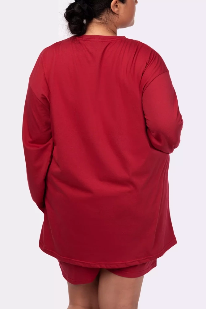 Urocza piżama damska uszyta z miękkiej i przyjemnej dla ciała bawełny. Model z oversizową, wygodną koszulką oraz krótkimi spodenkami podkreślającymi nogi. Spodenki mają nieco wyższy stan oraz szeroką gumę w pasie. Wykonana z niezwykle delikatnej i przewiewnej bawełny, zapewniającej komfort podczas snu.