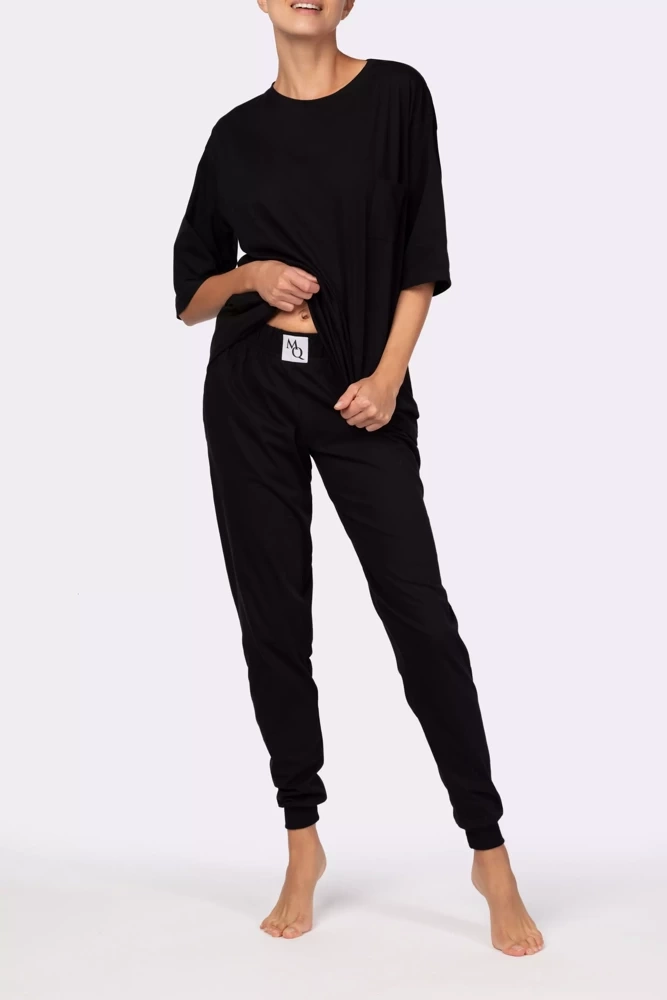 Urocza piżama damska uszyta z miękkiej i przyjemnej dla ciała bawełny. Model z oversizową, wygodną koszulką Spodnie mają nieco wyższy stan oraz szeroką gumę w pasie, gwarantującą idealne dopasowanie. Wykonana z niezwykle delikatnej i przewiewnej bawełny, zapewniającej komfort podczas snu.