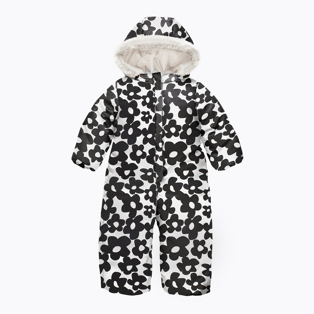 Wierzchnia warstwa kombinezonu to odporny na wiatr i zmoczenie 100% poliester. Podszewka to miłe w dotyku sztuczne futerko, które imituje futro lamy. W środku kombinezon jest wypełniony ocieplaczem, który dodatkowo chroni dziecko przed zimnem. Technologia silikonowania sprawia, że wypełnienie nie będzie się przemieszczać w czasie użytkowania i prania. Całość sprawia, że kombinezon osiąga izolację termiczną na poziomie 4,5 toga, czyli gwarantuje dziecku ciepło nawet w czasie mroźnych, zimowych spacerów.
