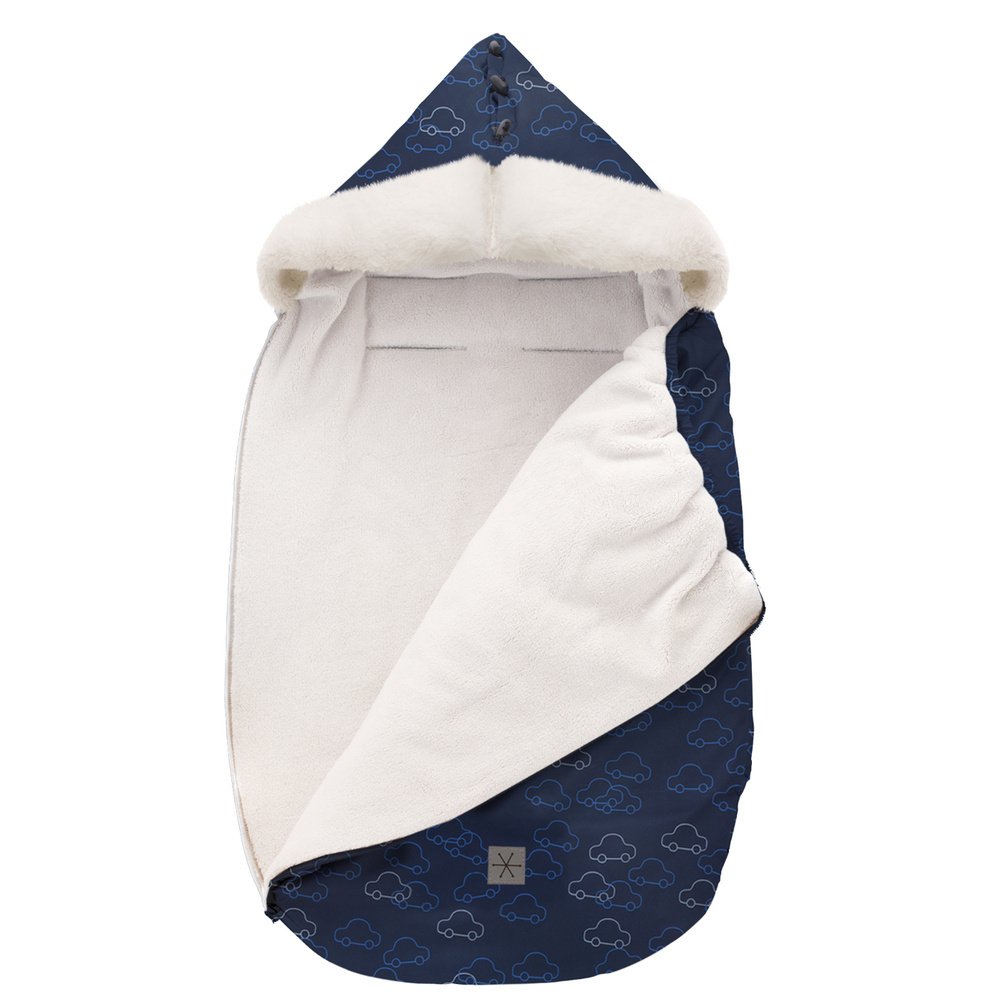 Śpiworek jest wypełniony wysokiej jakości włókniną, która gwarantuje dziecku przyjemne ciepło nawet w czasie mroźnych, zimowych spacerów.