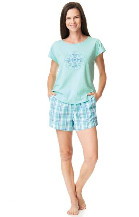 Piżama damska z krótkim rękawem wykonana z wysokiej jakości miłej i miękkiej bawełny. Koszulka z aplikacją.