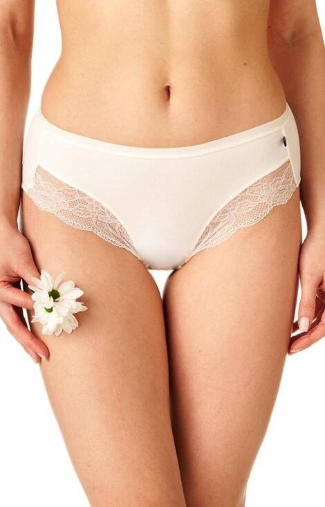 Figi damskie wykonane z wysokiej jakości bawełny połączonej z elastyczna koronką. Pakowane w pudełko po dwie sztuki. Krój klasyczny zakrywający brzuch i pośladki.