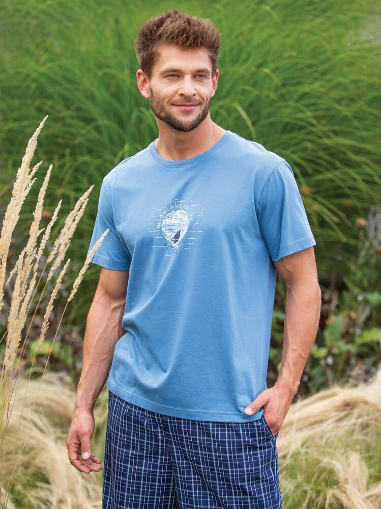 Piżama męska wykonana z wysokiej jakości miękkiej bawełny. Model o klasycznym kroju. Koszulka z krótkim rękawem.Do kompletu krótkie spodenki w kratkę . Spodoba się najbardziej wymagającym mężczyzną.