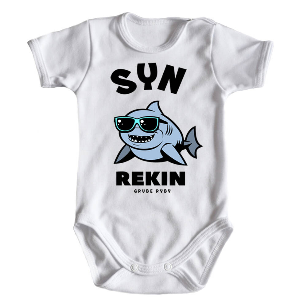 "REKINY grube ryby" Body krótki rękaw Moocha biały