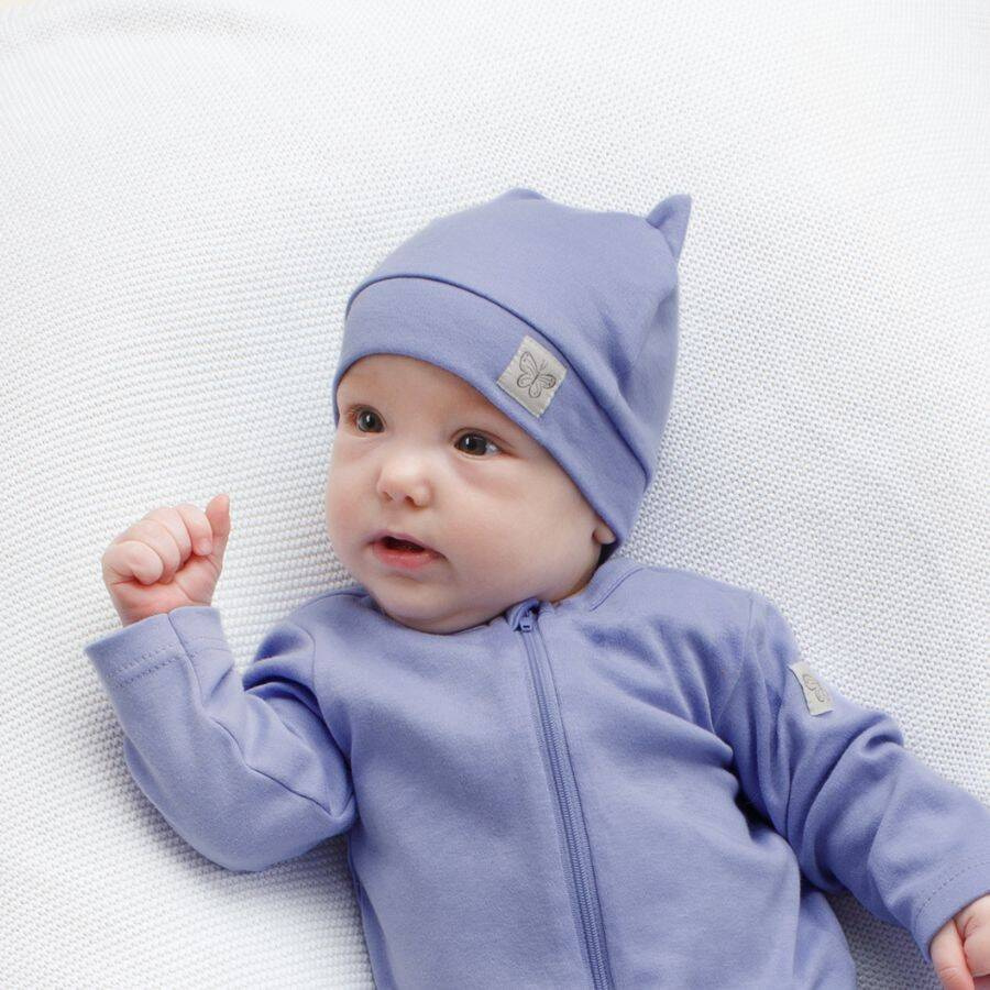 Mięciutka czapka uszyta z bawełny z ozdobnymi uszkami.